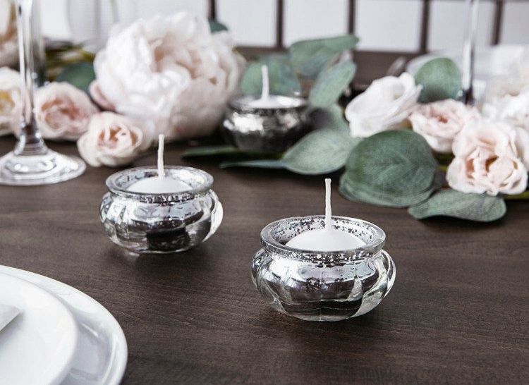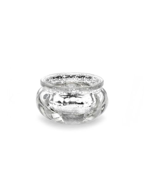 Niewielkich rozmiarów świecznik dopasowany do świeczek typu tealight. Jego uniwersalny wygląd ze szkła barwionego na srebrny kolor sprawdzi się na każdym przyjęciu.