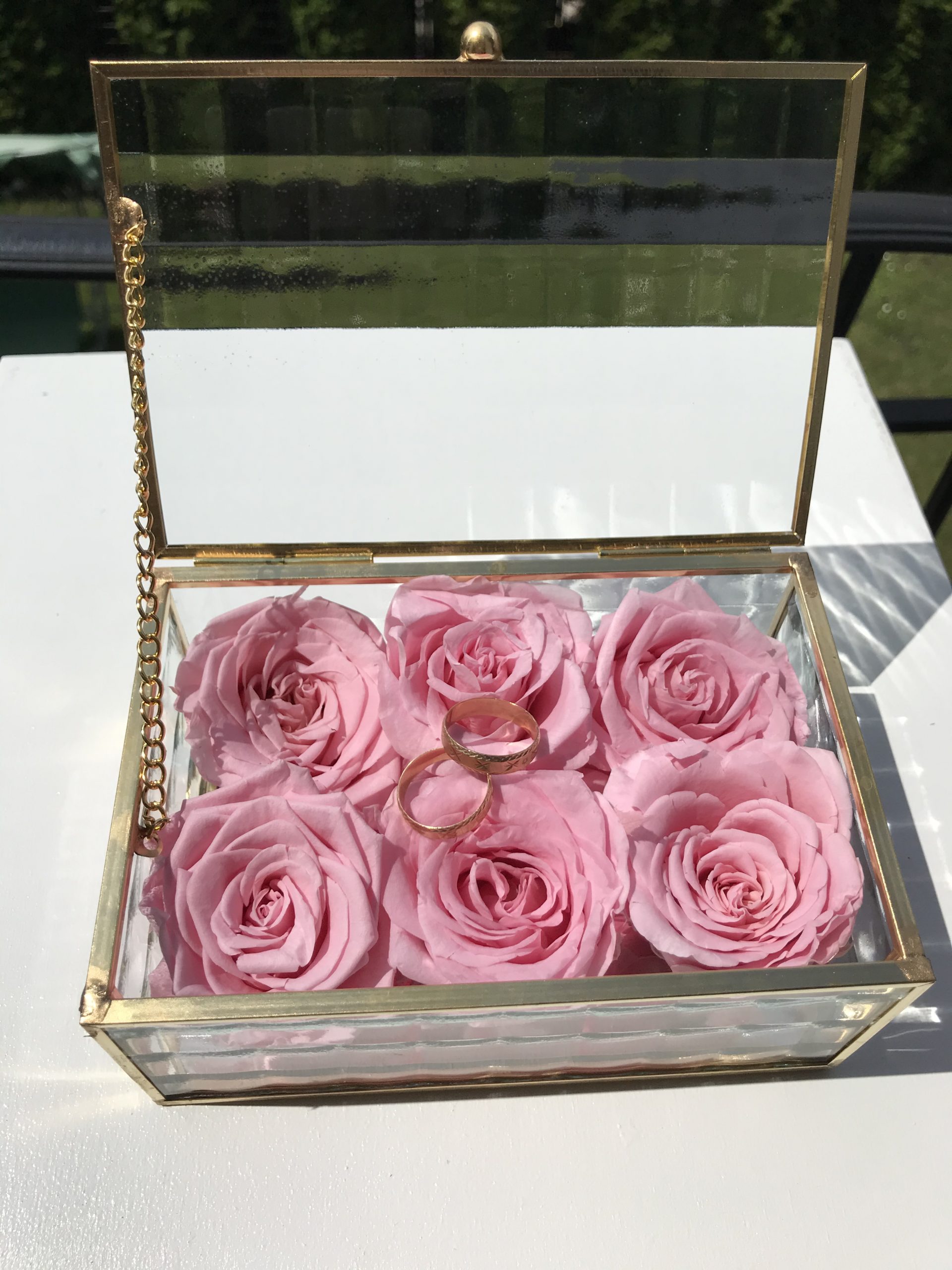 Na jej dnie znajduje się lustro, dzięki niemu obrączki będą się pięknie prezentowały.